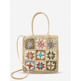 Women's Ethnic Retro Granny Floral Crochet Half Moon O Ring Decorated Crossbody Shoulder Bag