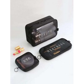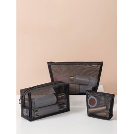 3Pcs High Capacity Portable Travel Mesh Cosmetic Storage Bags