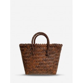 Women's Daily Beach Vacation Bow Decor Woven Straw Design Bucket Basket Tote Bag