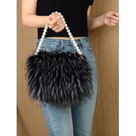 Women's Winter Solid Color Fluffy Faux Fur Tote Bag