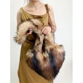 Women's Y2K Statement Oversized Heart Shaped Faux Fur Fluffy Crossbody Shoulder Bag