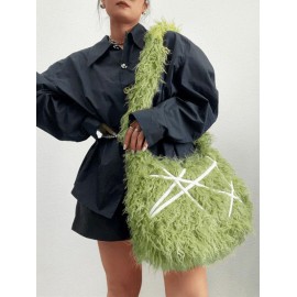 Women's Daily Solid Color Fluffy Fuzzy Furry Faux Fur Large Capacity Top Handle Shoulder Tote Bag